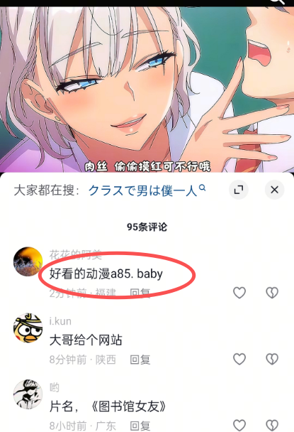 如果本站没有你要找的类别资源,看官可以在抖音,快手,小红书平台上寻找你要找的3条类别资源视频底下进行评论留言带上本站地址a85.baby,然后进行截图